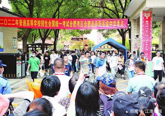 下午4时30分,作为今年市区高考考点之一,合肥市庐阳中学门口早已聚集了不少候考家长和亲属,有的家长身着旗袍手捧鲜花,不少家长还精心准备了条幅和礼物……随着考点门口的栅栏缓缓打开,很多等待多时的家长脸上都洋溢着笑容,举起手机记录下孩子们最后的高中时光。