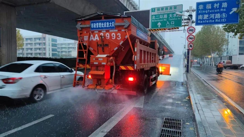 包河区滨湖城管办80名城管队员以雪为令,全力做好雨雪冰冻天气的应急保障工作。队员24小时待命,为铲冰除雪作业做好准备,集中力量保障雪后出行。若道路出现积雪,城管部门将以人工铲雪与机械除雪相结合的方式,优先对徽州大道、紫云路、中山路等城市快速路及主干道开展除雪作业,确保市民出行畅通。