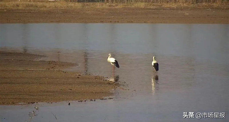 国家一级重点保护动物——东方白鹳现身董铺国家湿地公园。