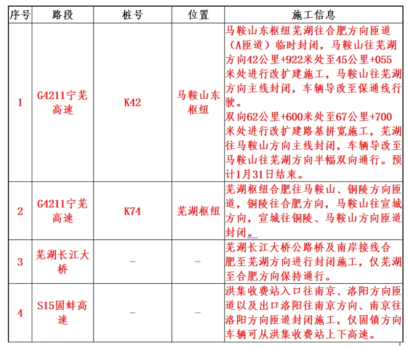 合徐高速:淮北、宿州、宿州南入口往徐州方向临时封闭。合肥往徐州方向车辆从宿州出口分流。
