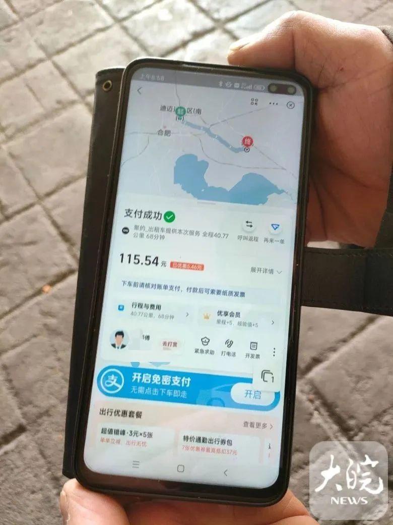 他打网约出租车去巢湖庙岗镇,