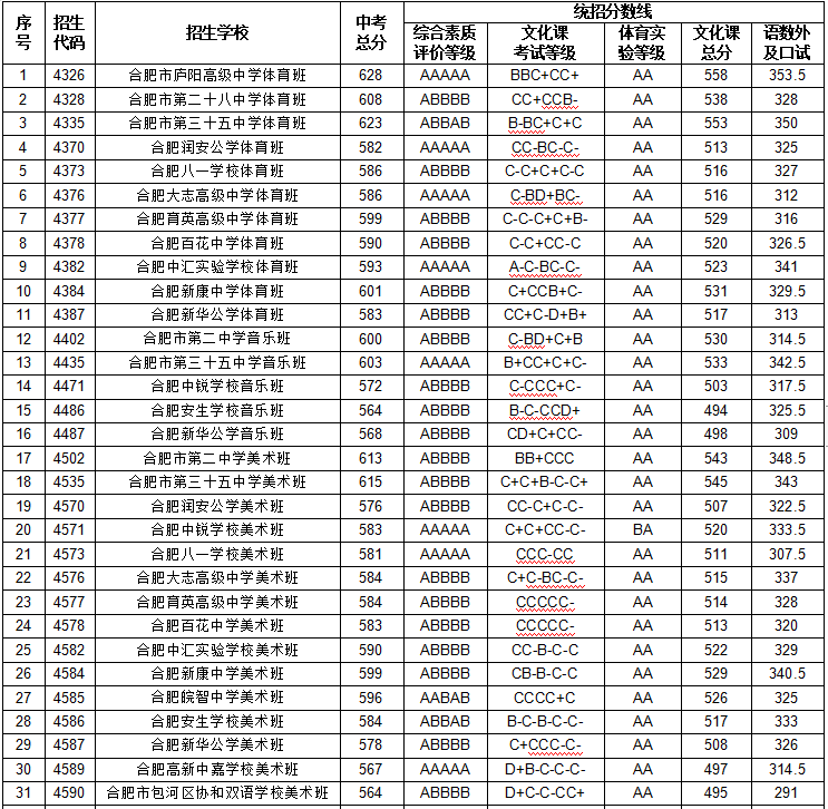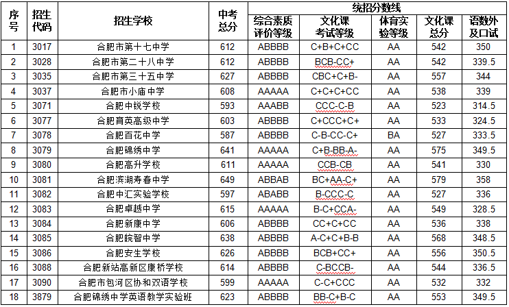 刚刚合肥市区2023年中考成绩发布2023年合肥市区普通高中录取最低分数线为587分700分以上1247人650分以上13881人600分以上25367人今年市区普通高中招生学校38所,较去年减少1所
