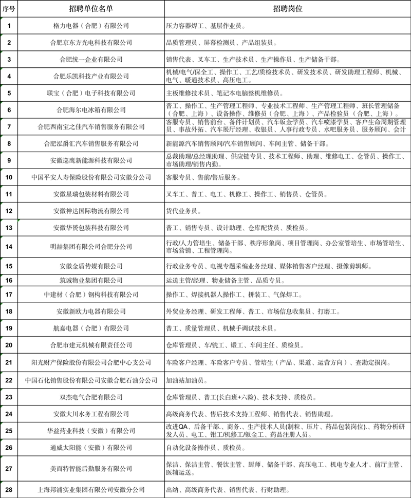 中国安徽人才市场2月1日(周三)就业招聘主题招聘会一、现场招聘会时间2023年2月1日(周三)9:00-12:00二、现场招聘会地点安徽省人才市场(合肥市包河区马鞍山路509号省政务大厦A区)部分参会
