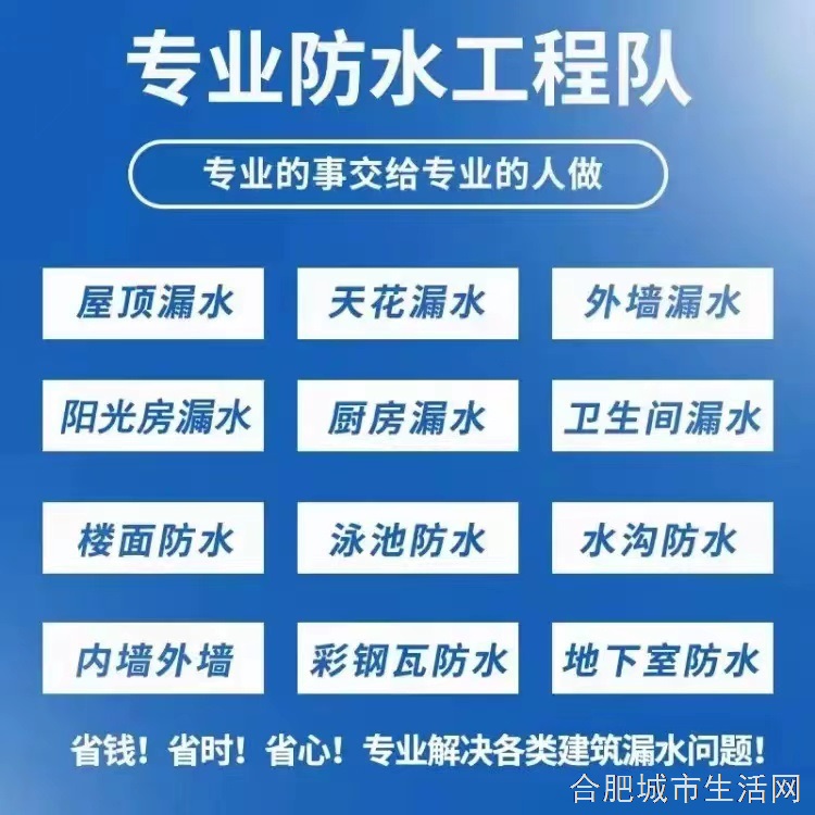 《防水补漏》楼房。平台。阳台。天沟。厨房。房屋顶。飘窗。卫生间漏水免敲墙,免砸砖,快速维修。钢结构漏水维修。阳光房漏水维修。外墙渗水维修。厂房漏水维修。高压注浆。诚信服务。价格便宜。免费上门专业雨虹防水补漏,厨卫免砸砖,质保十年~上门勘察。本人专注防水20年。承接各地区专业雨虹防水补漏,厨卫免砸砖。